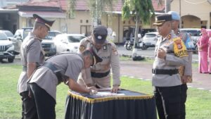 KABAREALITA.COM-PINRANG SULSEL, Kapolres Pinrang AKBP Andiko Wicaksono,S.I.K, memimpin pelaksanaan Upacara Serah Terima Jabatan (sertijab) kapolsek dan kasat di lingkungan Polres Pinrang Polda Sulsel.Rabu (27/03/2024).