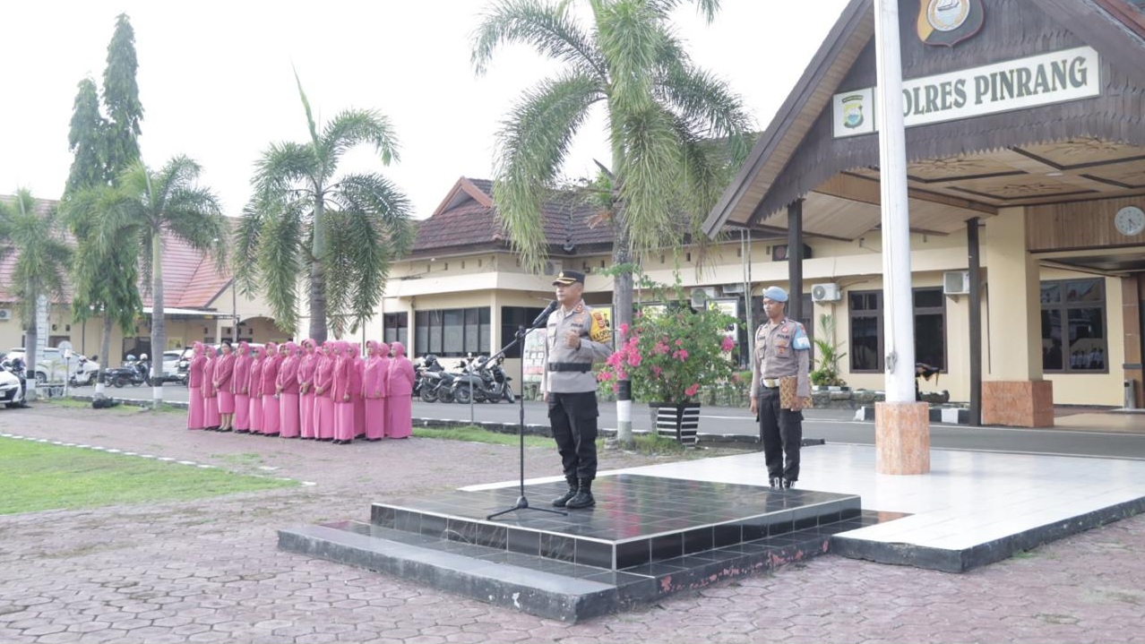 Upacara yang dilaksanakan di Lapangan Upacara Mapolres Pinrang, Jalan Bintang Kabupaten Pinrang ini di hadiri oleh Ketua Bhayangkari Cabang Pinrang , Pejabat Utama Polres Pinrang, Para Kapolsek Jajaran, Para Kanit, Para Perwira, dan Brigadir Polres Pinrang.