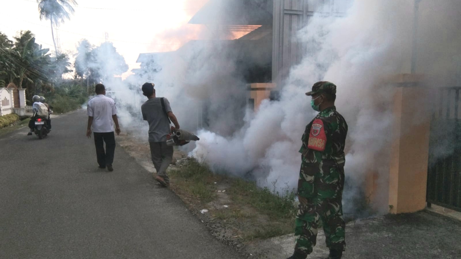 Serda Edy kepada Wartawan menyampaikan kalau Fogging atau Pengasapan yang di lakukan oleh Dinas Kesehatan di rumah warga, karna adanya kasus yang dinyatakan positif Demam Berdarah Dengue ( DBD ) yang sementara masih menjalani Perawatan di Rumah Sakit.