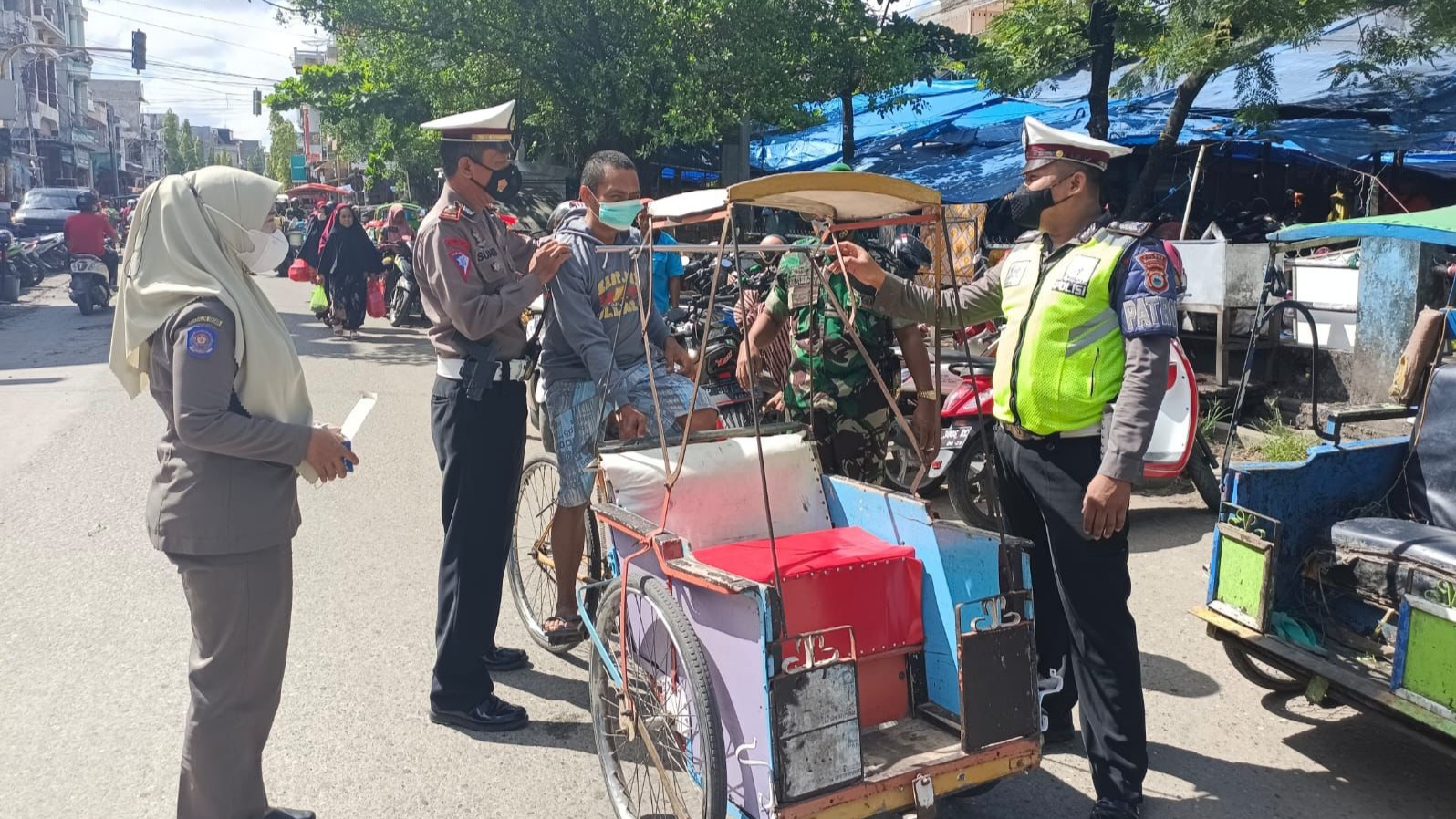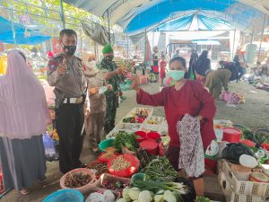 “Selain itu personel gabungan juga memberikan himbauan agar selalu mematuhi protokol kesehatan dan membagikan masker kepada para pedangan dan pengunjung pasar yang ditemui tidak menggunakan masker” tambah Ipda Suaib