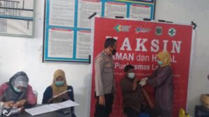 Bripka Darwis mengecek langsung pelaksanaan pemberian Vaksin COVID-19 untuk warga masyarakat, sebelum divaksin para penerima vaksin melaksanakan beberapa proses diantaranya, terlebih dahulu melaksanakan pendaftaran, dilanjutkan dengan pemeriksaan screening, kemudian dilakukan penyuntikan vaksin.