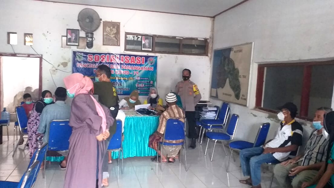 KABAREALITA.COM-PINRANG, Bhabinkamtibmas (BKTM) Polsek Duampanua Bripka Darwis.SH, melaksanakan kegiatan pengamanan sekaligus monitoring penyuntikan vaksin COVID-19 untuk Kategori umur 50 Tahun keatas di kantor Desa Paria, Kecamatan Duampanua, Kabupaten Pinrang, Jumat (11/06/2021).