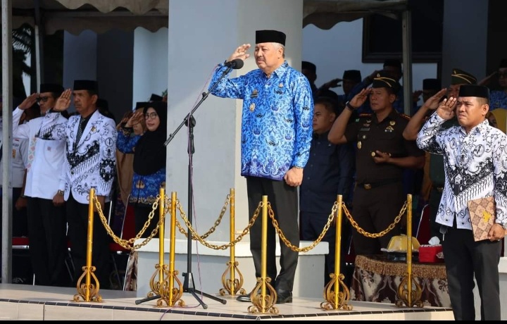 KABAREALITA.COM-PINRANG SULSEL, Pemerintah Kabupaten Pinrang menggelar Upacara Peringatan Hari Ulang Tahun Persatuan Guru Republik Indonesia (PGRI), Korps Pegawai Republik Indonesia (Korpri) dan Hari Guru Nasional, Kamis ( 30/11) di halaman kantor Bupati Pinrang.