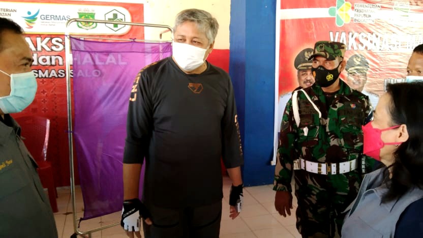 KABAREALITA.COM-PINRANG, Bupati Pinrang Andi Irwan Hamid memantau langsung Pemberian Vaksinasi bagi personil Kodim 1404 / Pinrang bersama pedagang pasar sentral pinrang tahap II yang di gelar diterminal lama Jl. Baronang Kelurahan Penrang Kecamatan Watang Sawitto Kabupaten Pinrang, Sabtu (20/02/ 2021)