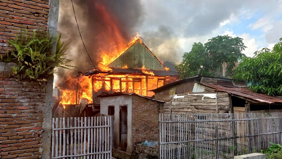 Berselang beberapa saat kemudian, kata dia, api langsung menyambar rumah yang ada di sebelahnya hingga ikut ludes terbakar.