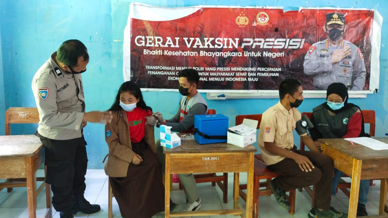 KABAREALITA.COM-PINRANG, Gerai Vaksin Presisi ” Bhakti Kesehatan Bhayangkara untuk Negeri ” Transformasi menuju Polri yang presisi mendukung percepatan penanganan Covid 19 untuk Masyarakat Sehat dan pemulihan Ekonomi Nasional menuju Indonesia maju “.