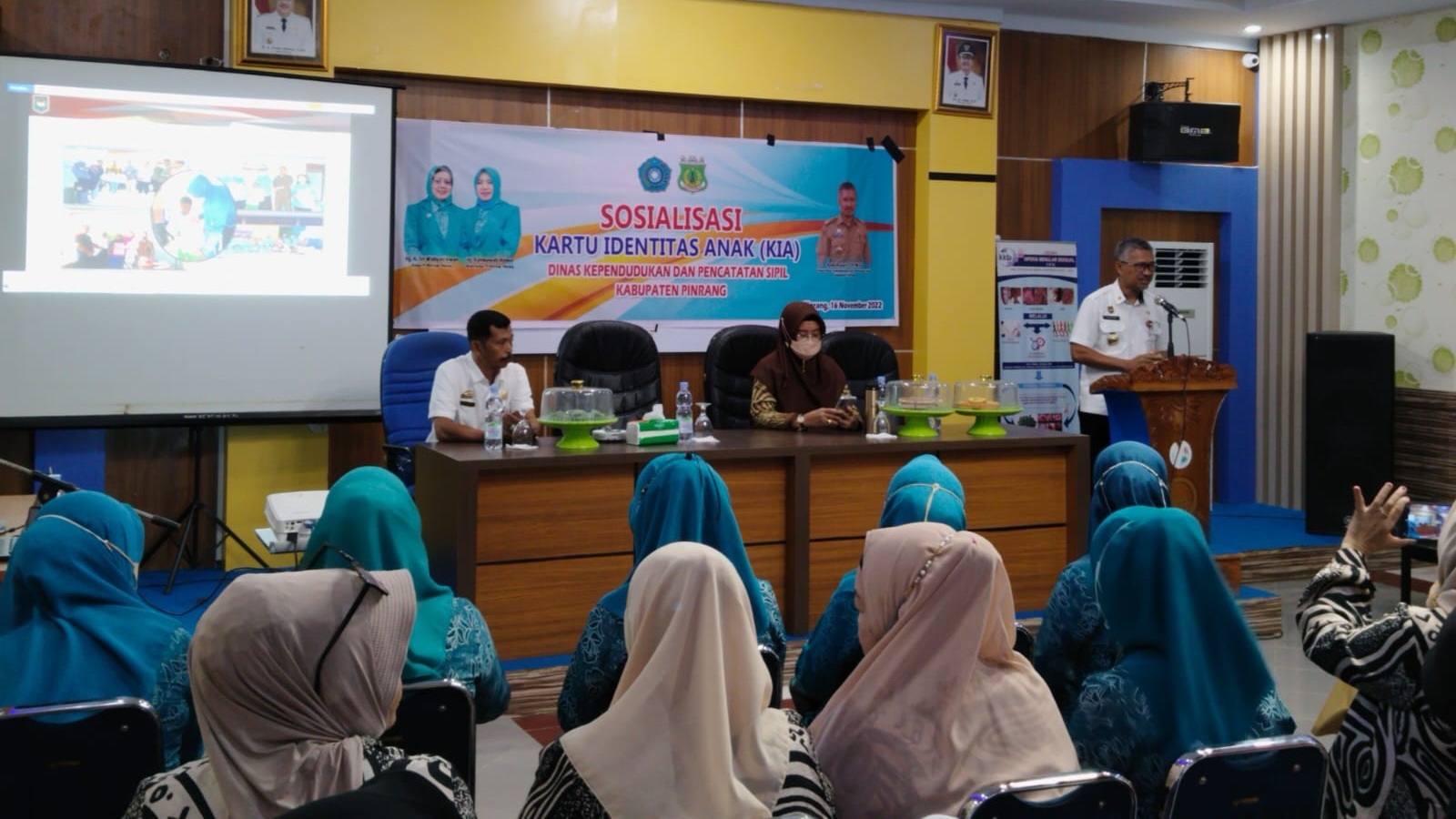 Kegiatan Sosialisasi Kartu Identitas Anak (KIA) yang diselenggarakan oleh Disdukcapil Kabupaten Pinrang dibuka secara langsung oleh Kepala Dinas Kependudukan dan Pencatatan Sipil Kabupaten Pinrang Andi Askari. S.Pi M.Si serta dihadiri oleh beberapa perwakilan OPD, Sekolah dan Lurah serta Desa.