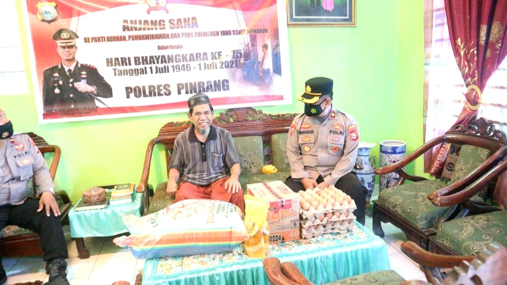 Wakapolres Kompol Muhabar mengatakan bahwa kegiatan anjang sana dilaksanakan dalam menyambut peringatan Hari Bhayangkara ke-75. Selain itu kegiatan ini juga sebagai salah satu bentuk kepedulian Polres Pinrang kepada purnawiran dan personil/asn polri yang sakit menahun ditengah pandemi covid-19.