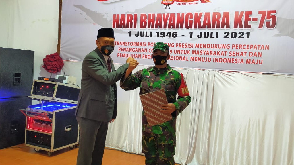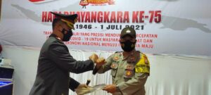 KABAREALITA.COM-PINRANF, Di hari ulang tahun ke-75 Bhayangkara, Babinsa 1404-04/Paleteang Serda Edy dan Bhabinkantibmas (BKTM) Polsek Watang Sawitto Bripka Aris,S. SH, menerima penghargaan (Piagam) dari Kapolres Pinrang, AKBP M.Arief Sugihartono ,S.IK , MT,di Aula Kwick Wins Polres Pinrang, Kamis (1/7/2021).
