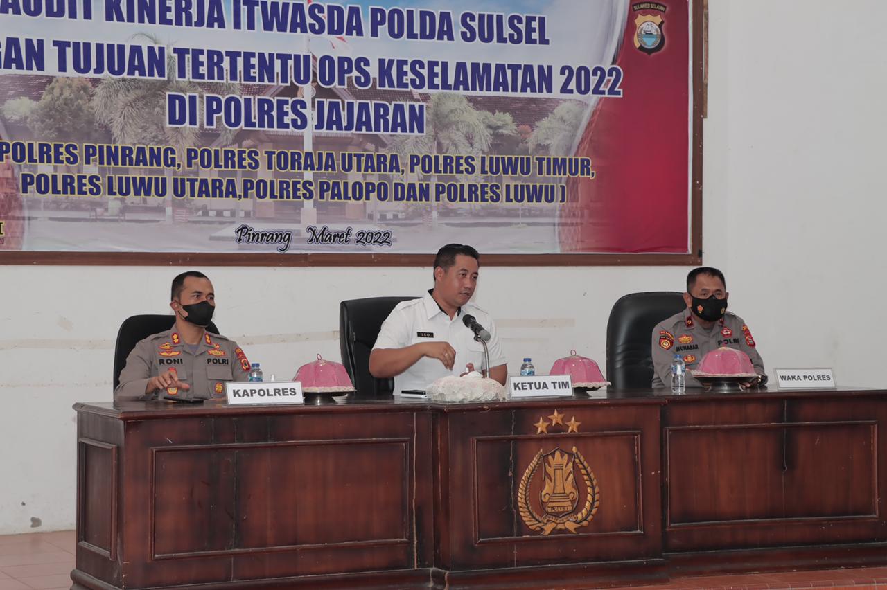 KABARLASINRANG.COM-PINRANG SULSEL, Tim Audit Itwasda Polda Sulsel Sambangi Polres Pinrang dalam Rangka Audit kinerja dengan tujuan tertentu Operasi Keselamatan tahun 2022. Sabtu (5/3/2022)