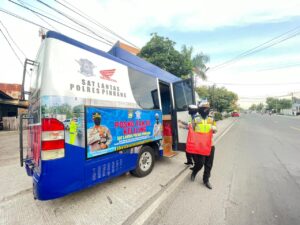 KABAREALITA.COM-PINRANG, Hari Pertama Ramadhan, Sat Polres Pinrang Membuat Posko Ta’jil Mobile Keliling dgn menggunakan Bus Pelayanan Sat Lantas Polres Pinrang.