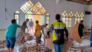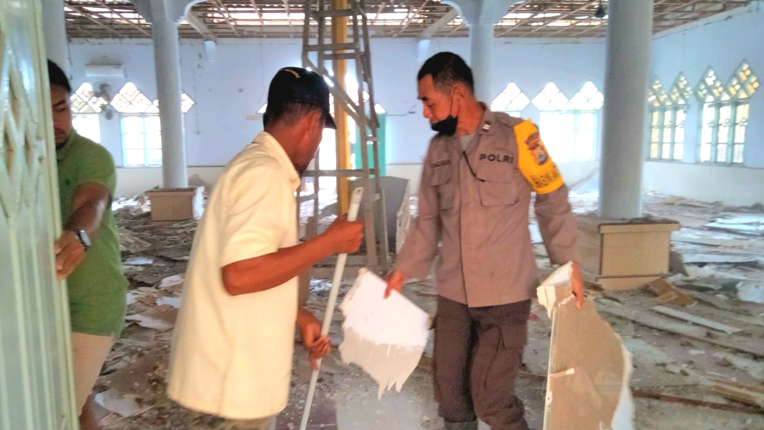 KABAREALITA.COM-PINRANG SULSEL, Bhabinkhamtibmas Polsek Suppa Polres Pinrang Aiptu machmud ikut membantu warga binaanya untuk membersihkan Masjid Miftahul khair dalam rangka pembangunan rehab di dusun bonging-ponging, Desa Lotang, Kecamatan Suppa, kabupaten Pinrang.