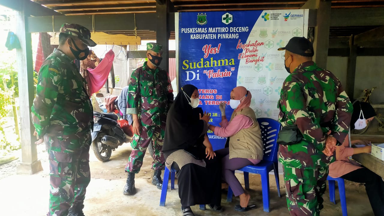 Ikut hadir memantau pemberian Vaksinasi tersebut Danramil 1404-04/Paleteang Kapten Inf Alimuddin Cappa, Kepala Puskesmas Mattiro Deceng Maipa Darma Tandiassang. S.ST, Lurah Marawi, Ahmadia Djalmang. SE, Kapolsek Tiroang AKP Gatot Yani S, Para Babinsa Koramil 1404-04/Paleteang serta Tim pelaksana Vaksinator Covid-19 dari Puskesmas Mattiro Deceng dan Warga masyarakat yang mau di Vaksin.