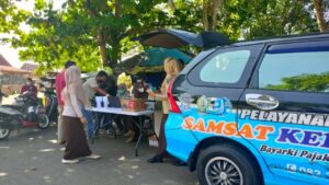 Pemilik Kendaraan Andi Nasrun mengaku sengaja mendatangi Samsat keliling untuk membayar pajak kendaraanya meski belum jatuh tempo ” Banyak kemudahan yang diperoleh di samsat keliling ”