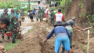 “Kegiatan bersih-bersih saluran air ini untuk mengantisipasi banjir di musim penghujan dan penyebaran penyakit Demam Berdarah (DBD), kata Dandim 1419/Enrekang. Jumat 08/12/2023