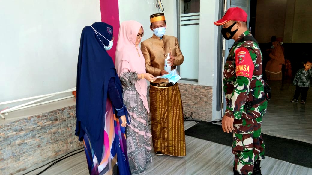 KABAREALITA.COM-PINRANG, Tekan Penyebaran Covid 19 Babinsa Koramil 1404-04/Watang Sawitto Serda Edy Pantau Giat Hajatan Pernikahan di Hotel MS, Jalan Jenderal Sukowati, Kelurahan Macorawalie, kecamatan Watang Sawitto, Kabupaten Pinrang.