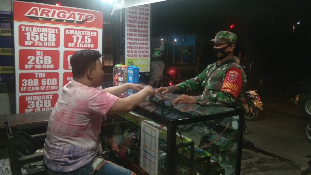 KABAREALITA.COM-PINRANG, Patroli malam ditengah pandemi covid 19 ini menjadi rutinitas sehari-hari bagi Babinsa Koramil 1404-04/Paleteang terutama kepada Pemilik Usaha Cellular dan warung makan, karena masih banyak pemilik usaha yang tidak melaksanakan/mematuhi protokol kesehatan covid – 19 terutama tidak menggunakan MASKER sesuai aturan Pemerintah Daerah Kabupaten Pinrang, Sabtu (10/07/2021).