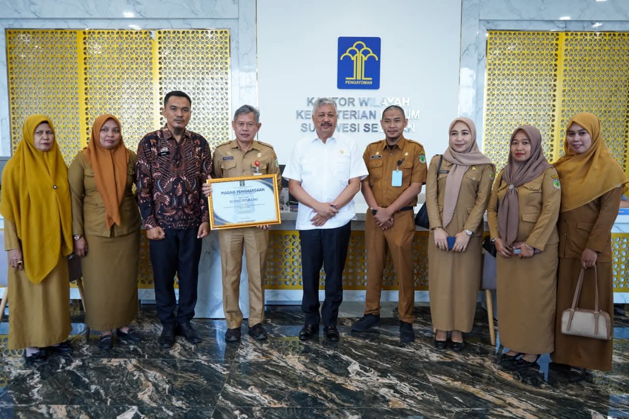 Atas komitmen dan upaya tersebut, Pemerintah Kabupaten Pinrang menerima penghargaan bersama 17 kabupaten/kota lainnya di Sulawesi Selatan dari Kementerian Hukum RI.