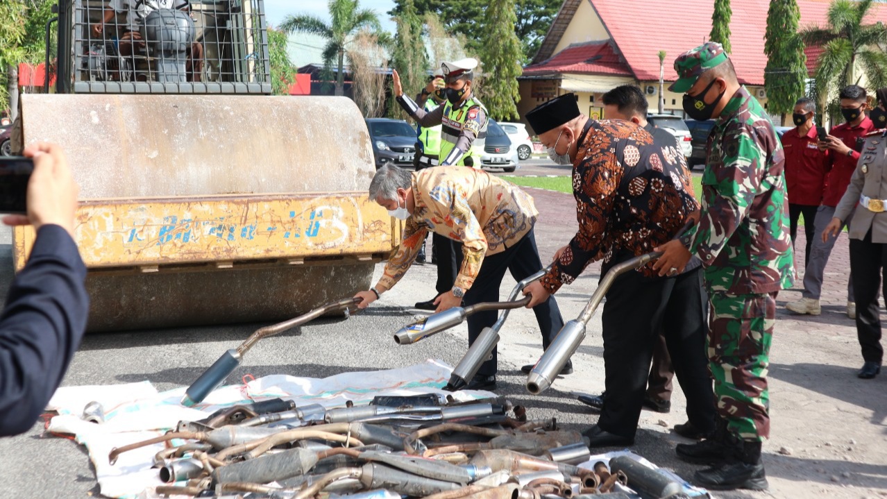 “Hari ini, kami melakukan pemusnahan 250 knalpot bersuara bising yang merupakan hasil operasi yang dilakukan selama bulan ramadhan hingga selesainya pelaksanaan Operasi Ketupat 2021,” kata Darma.