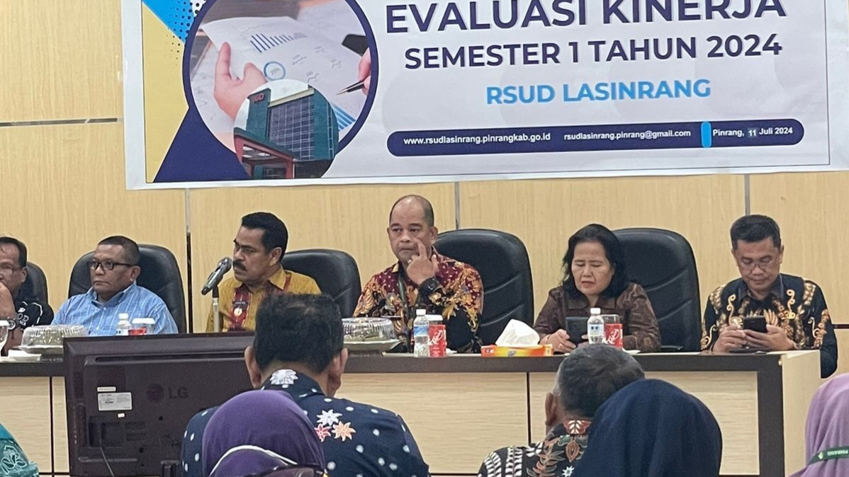 KABAREALITA.COM-PINRANG SULSEL, Rumah Sakit Umum Daerah (RSUD) Lasinrang Pinrang, menggelar rapat Monitoring dan Evaluasi Kinerja, di Aula lantai 4 RSUD Lasinrang, Kamis (11/07/2024).