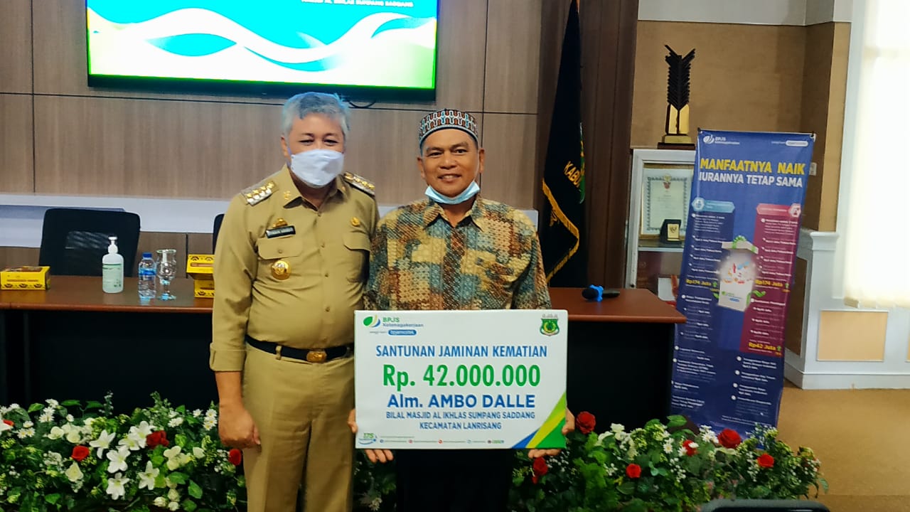 Dalam sambutannya Bupati Pinrang mewakili pemerintah dan pribadi menyampaikan ucapan belasungkawa. Bupati Pinrang menyampaikan bahwa saat ini sulit menemukan sosok yang tepat dan mau untuk mengisi posisi sebagai pegawai syara, sehingga program Pemerintah Kabupaten Pinrang memberikan Jaminan Kematian ini dinilai tepat guna memberikan perlindungan dan penghargaan kepada mereka.