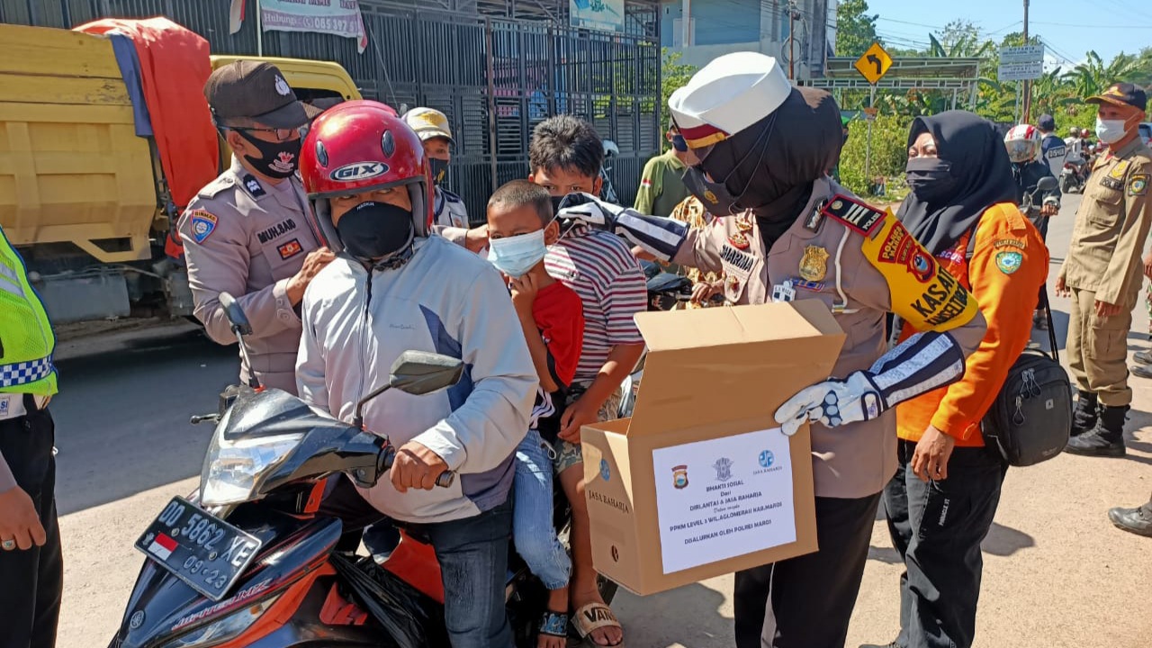 “Ini adalah salah satu bentuk kepedulian kami terhadap masyarakat yang terdampak langsung akibat pemberlakuan pembatasan kegiatan, kegiatan ini juga sekaligus menjadi masukan bagi kami terkait kondisi real dimasyarakat ” ungkap AKP Dharmawaty.