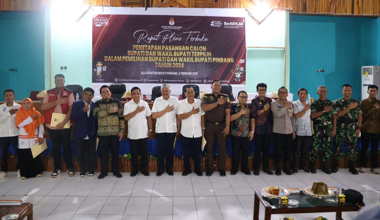 Dalam rapat pleno ini, KPU Kabupaten Pinrang secara resmi menetapkan pasangan H.A. Irwan Hamid dan Sudirman Bungi sebagai Bupati dan Wakil Bupati Pinrang terpilih dalam Pilkada serentak Tahun 2024.