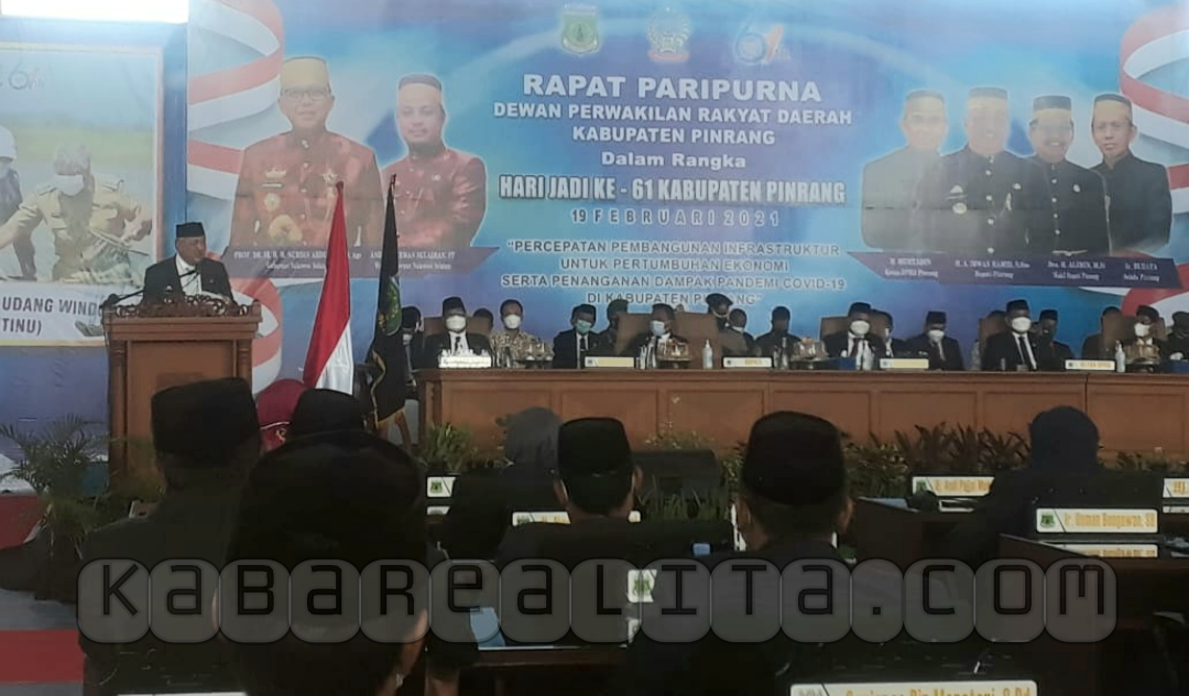 KABAREALITA.COM-PINRANG, Puncak peringatan hari jadi kabupaten Pinrang yang ke-61 Tahun 2021 kali ini diselenggarakan secara berbeda dari tahun tahun sebelumnya, dimana pelaksanaannya digelar dengan tekhnologi video virtual dan mengambil lokasi di gedung olahraga indoor arah barat kawasan kantor Bupati Pinrang jalan Bintang. Jumat (19/02/2021)