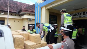 Setelah pembagian secara simbolis, Kapolres Pinrang AKBP M. Arief Sugihartono melepas langsung bantuan tersebut dan disalurkan oleh Personel Sat Lantas Polres Pinrang.