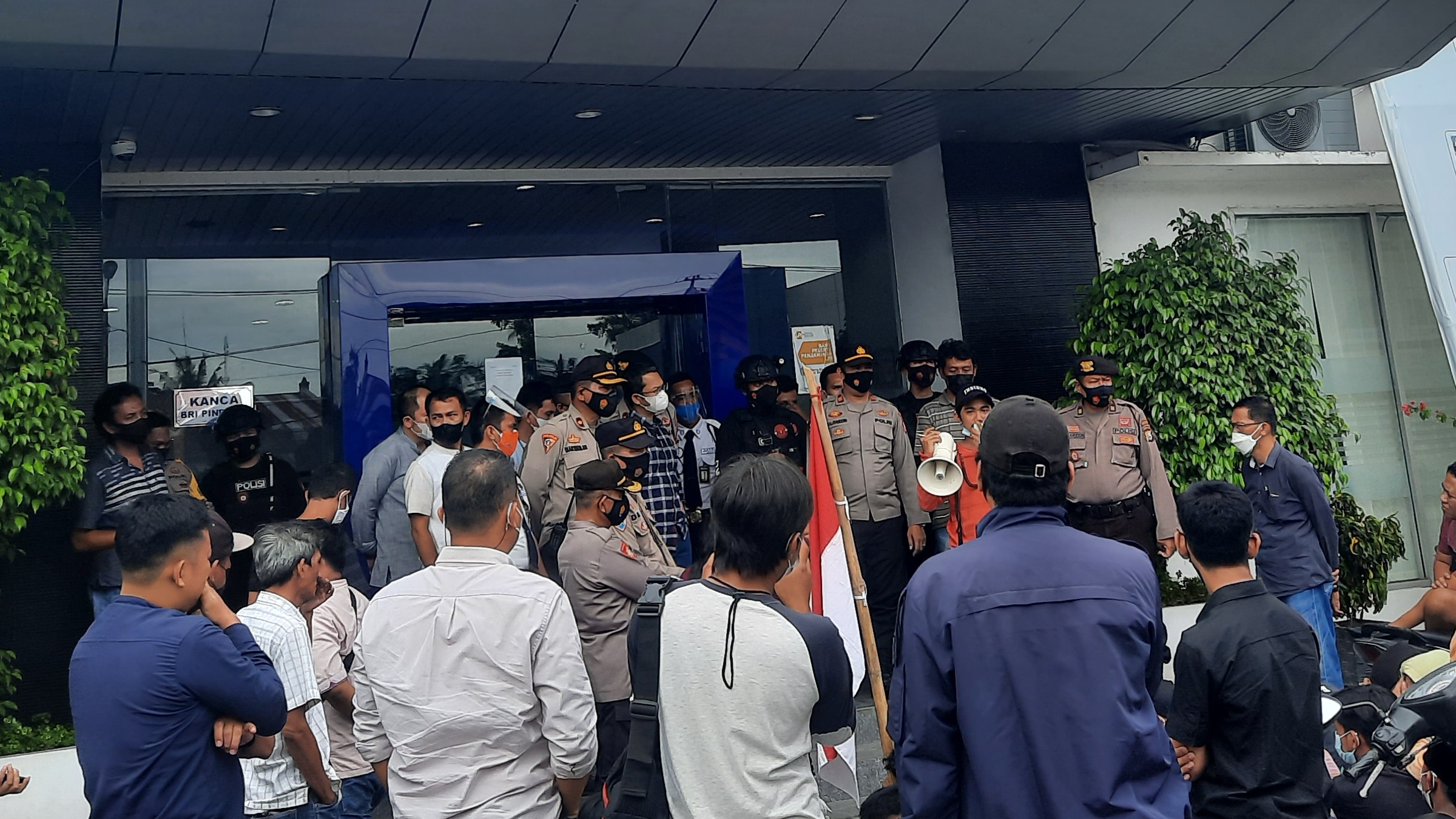 KABAREALITA.COM-PINRANG, Aliansi pemerhati masyarakat pinrang gelar aksi demonstrasi di depan Bank Rakyat Indonesia (BRI) Cabang Kabupaten Pinrang. Jumat (30/07/2021).