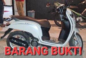 Dari tangan pelaku, team yang mengamankan berhasil menyita barang bukti sebuah kendaraan roda dua jenis matic Scoopy.”