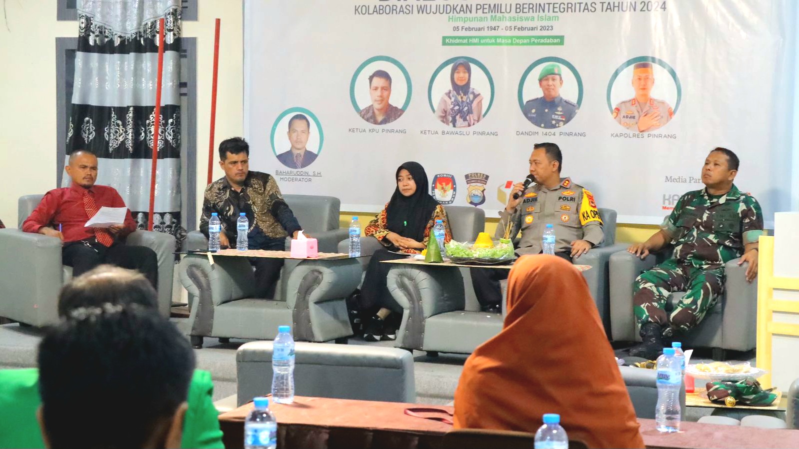 KABAREALITA.COM-PINRANG SULSEL, Bersama dengan Polres Pinrang, Kodim 1404/Pinrang, Pemerintah Daerah Kabupaten Pinrang, KPU dan Tokoh Pemuda serta para tamu undangan, Himpunan Mahasiswa Islam (HMI) Kabupaten Pinrang menggelar Dialog Demokrasi di momentum milad ke-76, Senin(06/02/23).