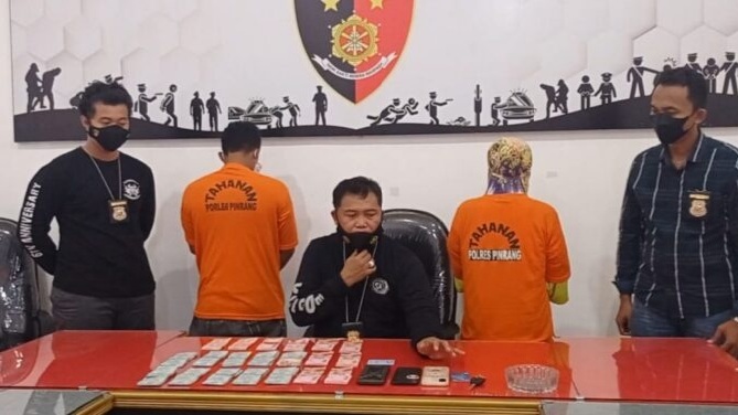 Kanit Tindak Pidana Tertentu (Tipiter} Polres Pinrang Iptu Hasmun mengatakan, 2 (Dua) orang terduga pelaku itu diamankan di lokasi yang berbeda. ” Masing-masing di Sulawesi Barat dan di Kabupaten Luwu, ” kata dia, di Mapolres Pinrang Selasa 24 agustus 2021.