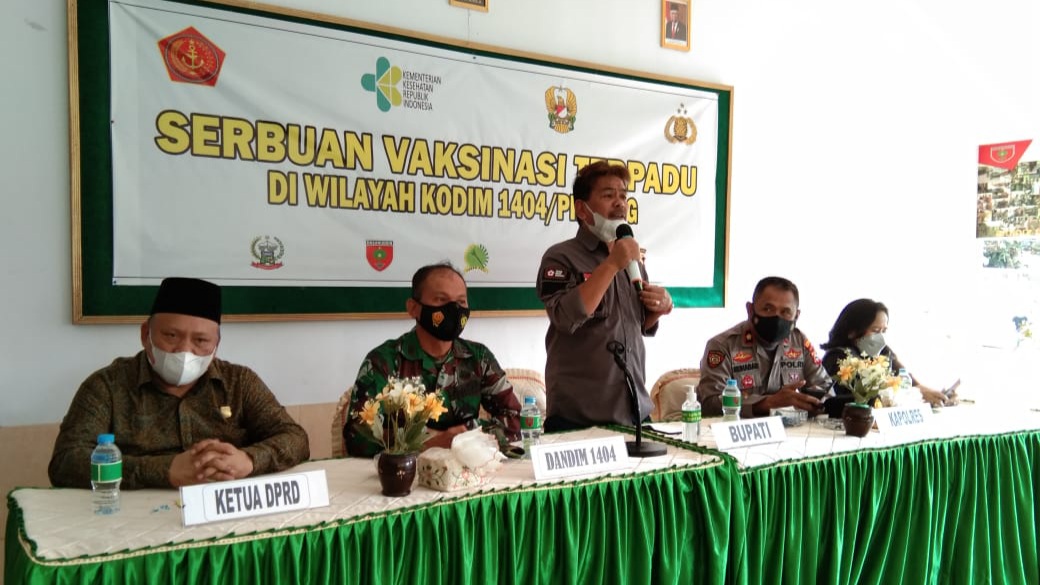 Dalam kegiatan tersebut Kodim 1404/Pinrang bekerja sama dengan Dinas Kesehatan Kabupaten Pinrang sebagai tim medis dan Vaksinator yang berjumlah 45 orang dipimpin oleh drg. Fauziah. M. Kes.
