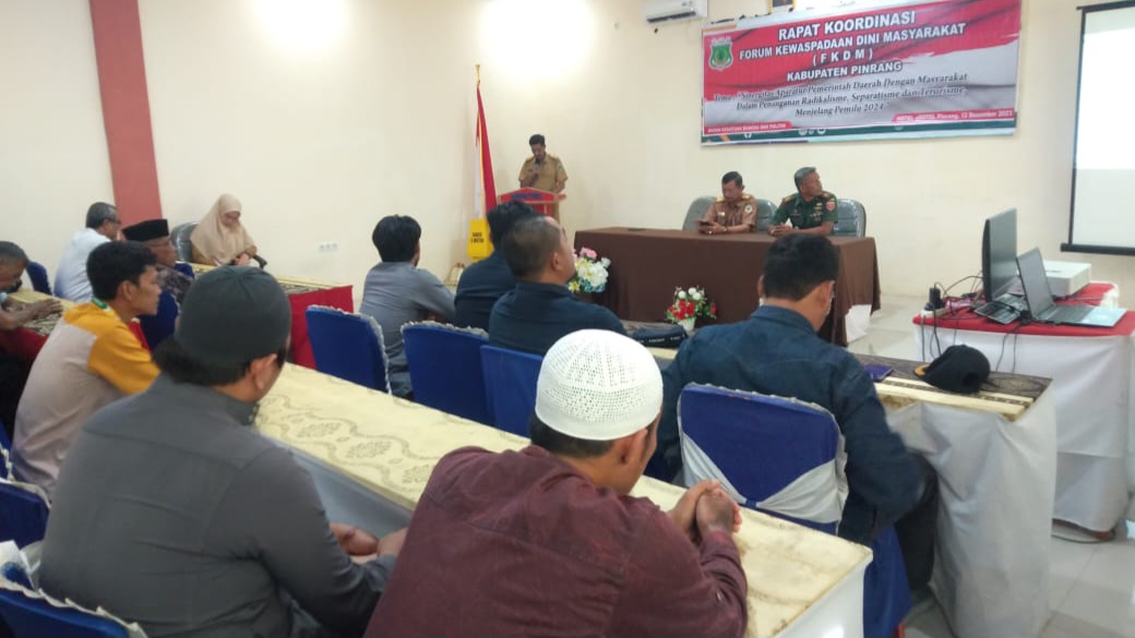 KABAREALITA.COM-PINRANG SULSEL, Badan Kesbangpol Kabupaten Pinrang menggelar Rapat Koordinasi Forum Kewaspadaan Dini Masyarakat (FKDM) sekabupaten Pinrang Tahun 2023, dengn mengangkat Tema “Sinergitas Aparatur Pemerintah Daerah Dengan Masyarakat Dalam Penanganan Radikalisme, Separatisme dan Terorisme Menjelang Pemilu 2024” di Hotel Edotel UPT SMK N 2 Pinrang Kelurahan Salo, Kecamatan Watang Sawitto, Kabupaten Pinrang, Selasa (12/12/2023).