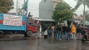 KABAREALITA.COM-PINRANG SULSEL, Dibawah guyuran hujan deras, HMI cabang Pinrang menggelar aksi demonstrasi menolak wacana kenaikan Harga BBM.
