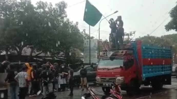 Aksi HMI sempat diwarnai ketegangan saat mahasiswa berusaha menghadang sebuah mobil tangki.