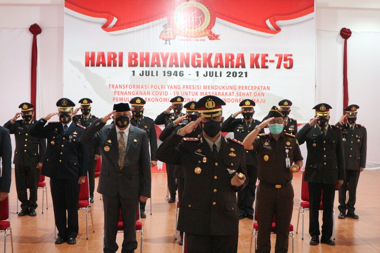 Dalam amanat Presiden Jokowi mengucapkan, selamat Hari Bhayangkara ke 75 kepada segenap keluarga besar Kepolisian Republik Indonesia dimanapun bertugas dan menyampaikan apresiasi yang setinggi tinggginya atas kerja keras jajaran Polri dalam menangani pandemi covid-19 sekarang ini