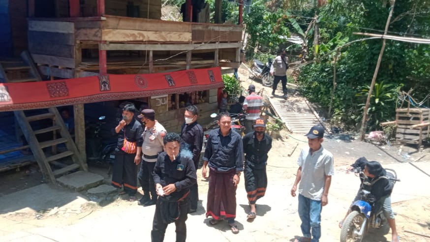 KABAREALITA.COM-PINRANG, Kapolsek Lembang Iptu Bakri,SE bersama Personil memantau kegiatan Pesta Adat Rambusolo di Kampung Kondo Dusun Londe, Desa Lembang Mesakada Kecamatan Lembang Kabupaten Pinrang, Minggu (10/10/2021).